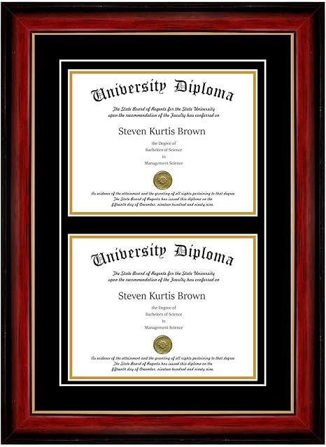 Amazon Com Graduation Diploma Frame For Four Degree Double Matted Certificate Quadruple Certificate License Frames College Document Holder Satin Matte Mahogany Gold Trim Top Black Inner Maroon